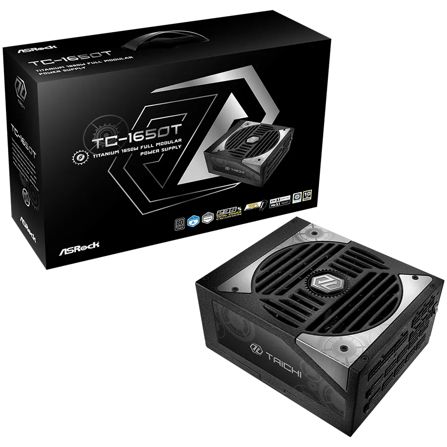 Asrock TC-1650T, 1650W, 80 Plus Titanium, Fully Modular PSU, Japanese Capacitors, 2x EPS 12V CPU(4+4pin), 2x PCIe5.1 (12+4pin), 8x PCIe (6+2pin), 6x 4-pin connectors, 12x SATA, OCP, SCP, OVP, UVP, OTP, OPP protections, 135 mm Axial Fan, ATX 3.1