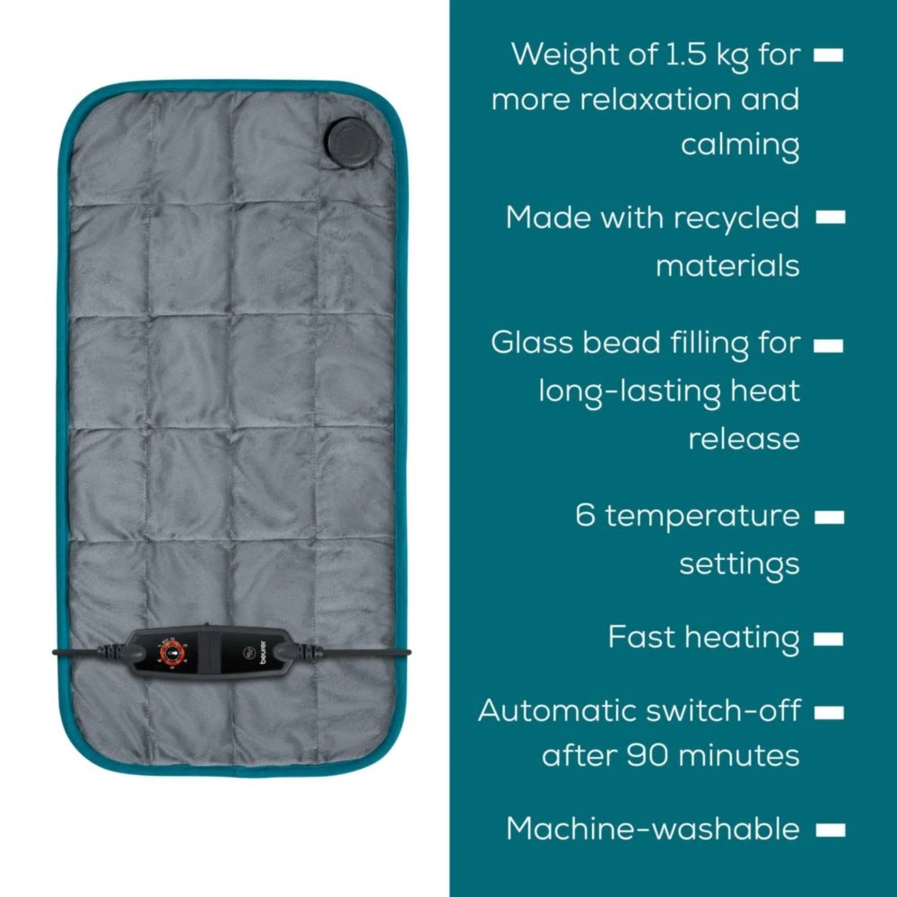 Beurer HK 145 CosyWeight Green Planet XXL, 100% recycled material, Adherent heating pad thanks to glass bead filling,BSS, OEKO-TEX Standard 100, 6 temperature settings, automatic switch off after 90 min; washable on 30° - 20039_BEU