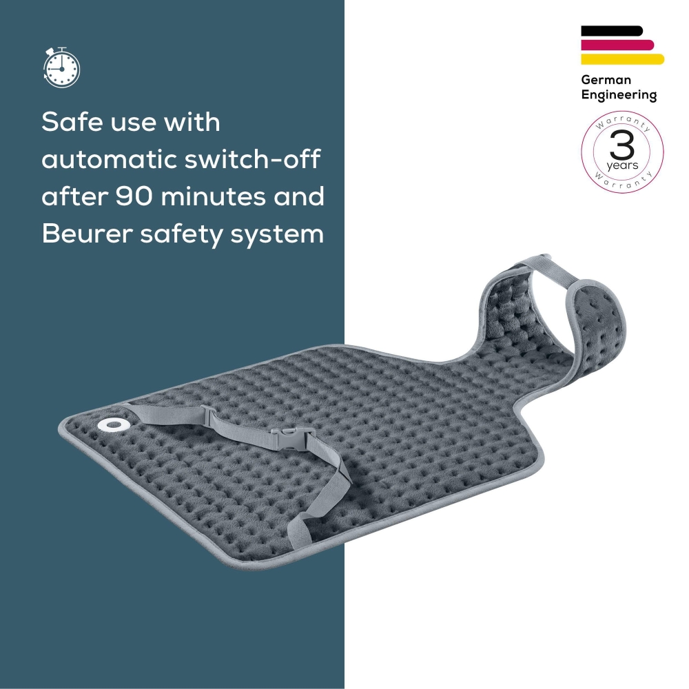 | Други: | Beurer safety system: temperature monitoring and safety shutdown, Individually adjustable with waist belt and soft velcro fastener at the neck, Cover: machine-washable at 30°C |