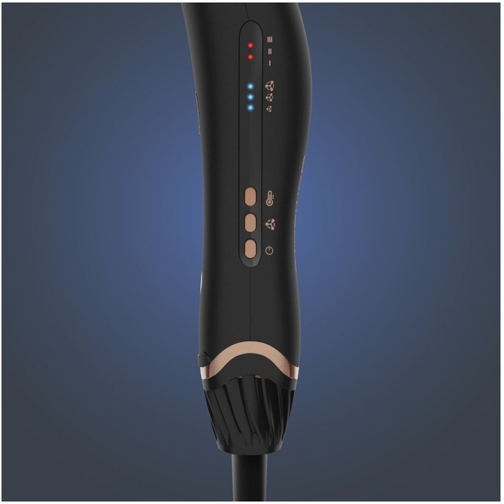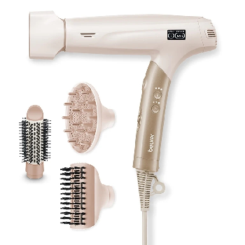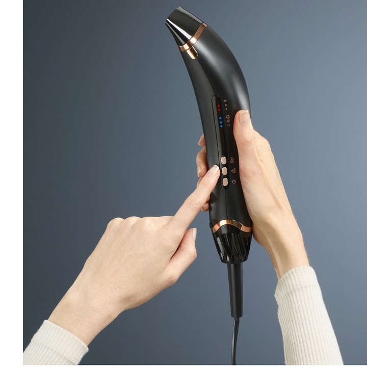 Комфортът се допълва от ефективност, с мощна скорост на въздуха до 170 км/ч и гребен с функция за изглаждане благодарение на ефекта Коанда, който оставя косата гладкаи блестяща, с по-малко накъдряне.